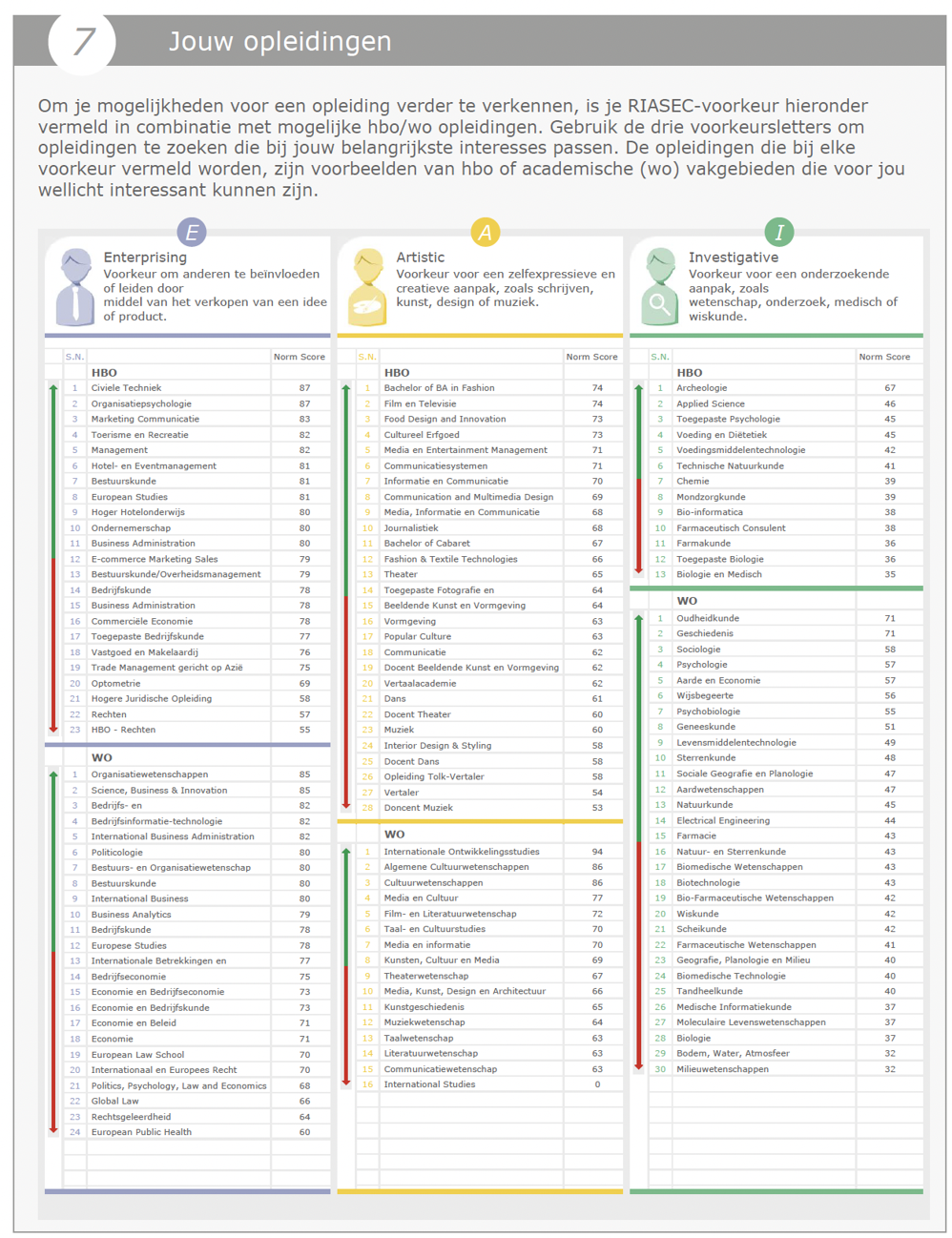 Voorbeeldpagina uit het rapport van de HBO opleidingen test